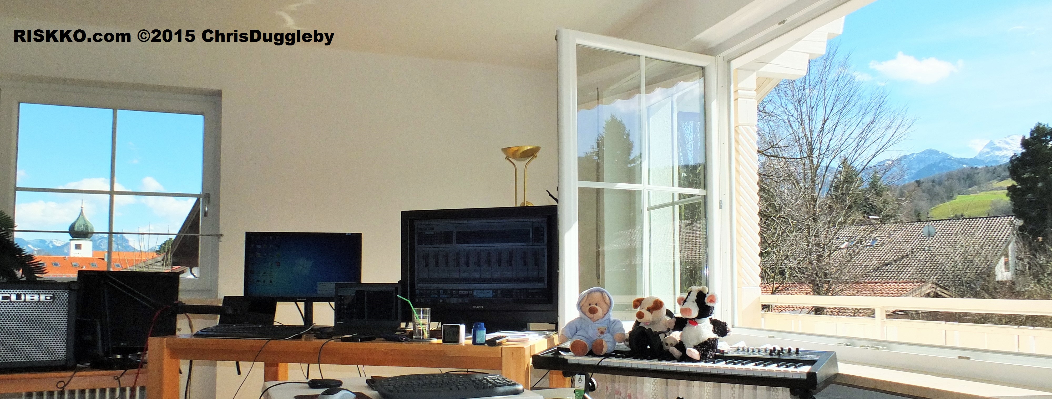 I think this is the first of my Baroque interpretations that I have produced in all three of my VALIUMM studios (Table Mountain in South Africa, Surrey in England and the Bavarian Alps). As I travel a great deal I try to make sure I can keep working on my music by duplicating my recording facilities around the world. My main selection criteria for each location is that: a) it needs to be near to a good international airport (Cape Town, Heathrow and Munich) and b) it must have inspiring views. Here are some photos of the facilities in the Alps taken two days ago (on Good Friday):